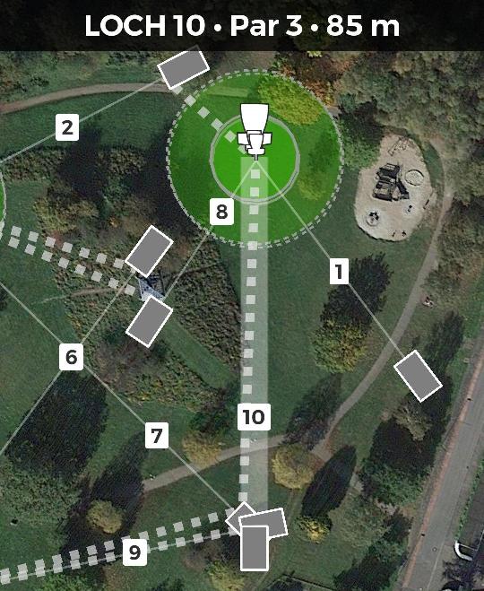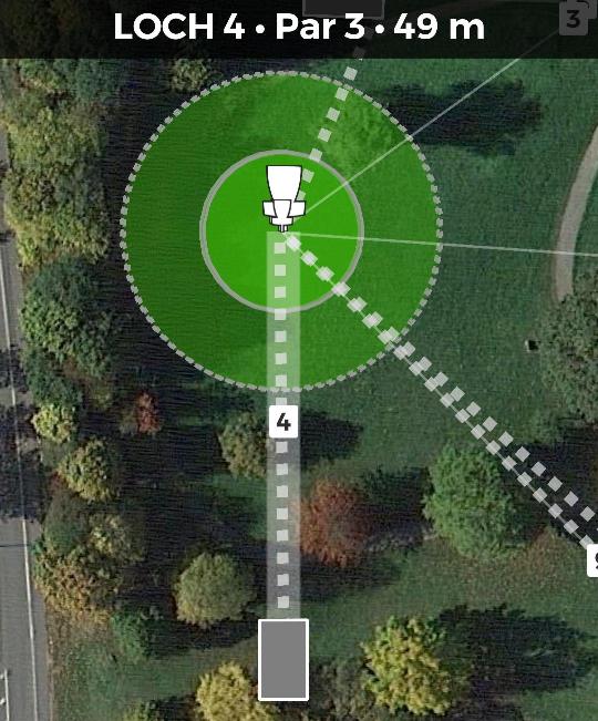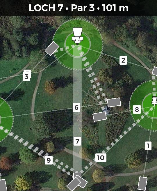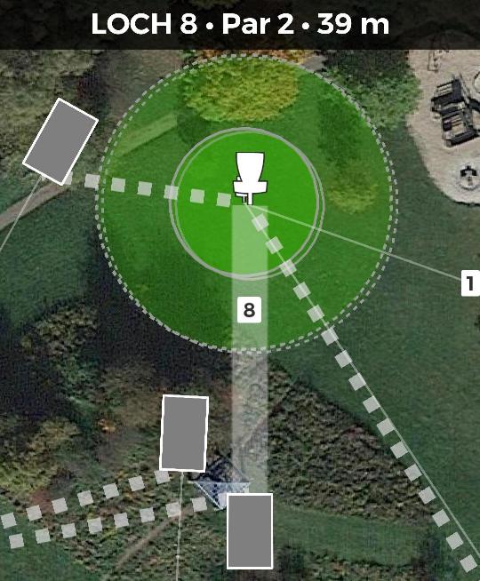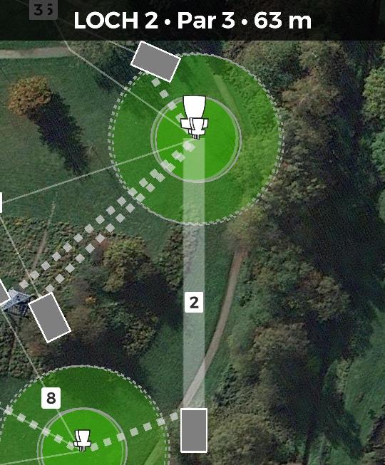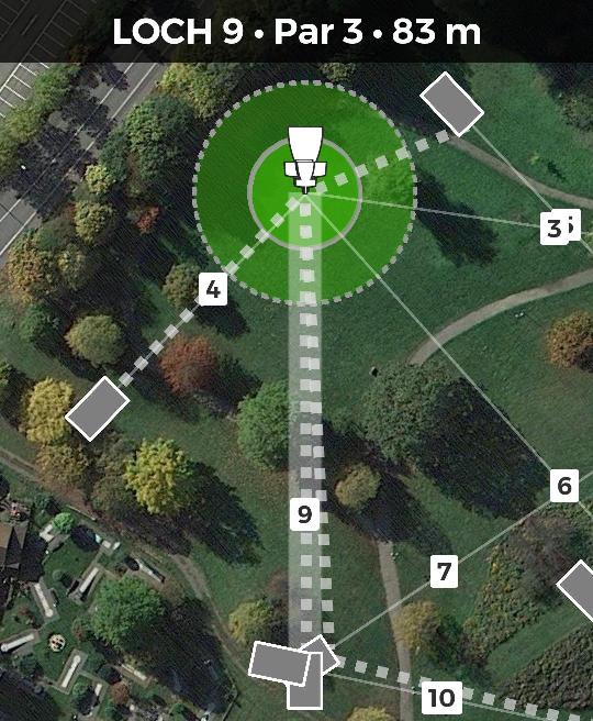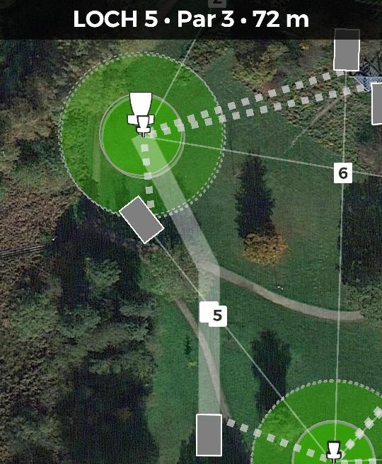 Entweder zwischen den Bäumen hoch, die enge Lücke nutzen oder um den linken Baum als Vorhand-Hyzer herum. Wer hängenbleibt ist schnell OB.