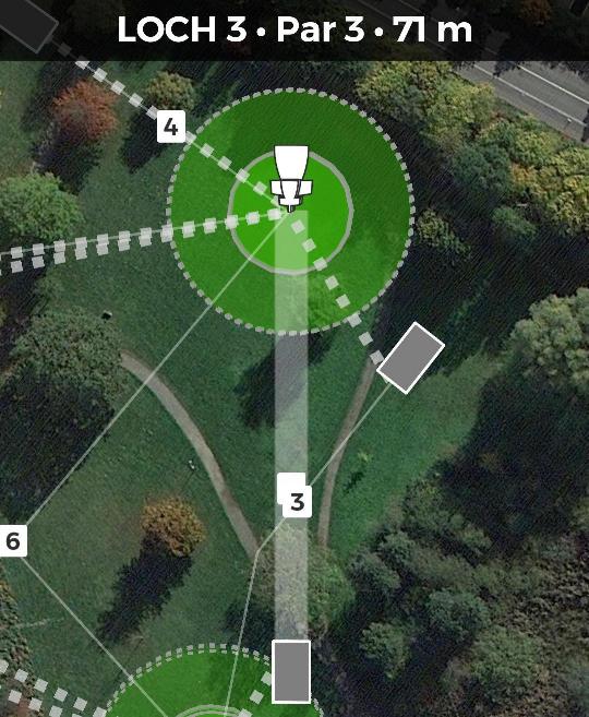 Out of Bounds (OB) ab dem Gehweg und außerhalb.